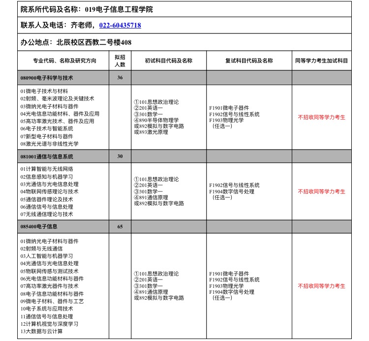 学姐报考的是电子信息工程学院的信号与通信系统专业,如下图,学科代码080900、081001均为学硕,085400为专硕(注:学硕与专硕在学院内没有太大差别)。