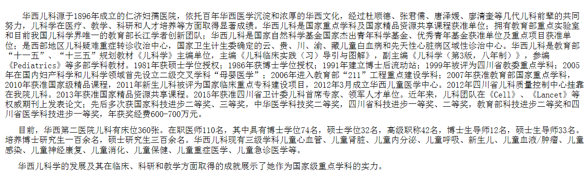 2020四川大学华西临床医学院儿科学考研学科介绍