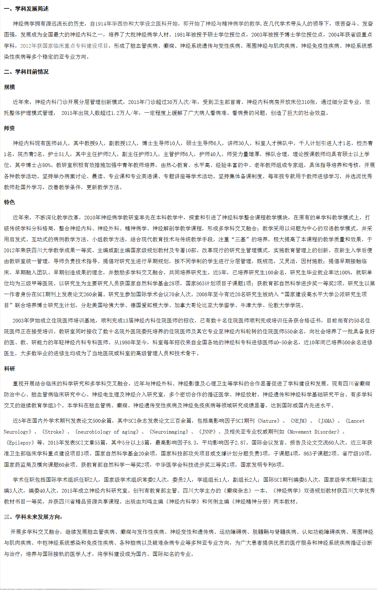 2020年四川大学华西临床医学院神经病学考研学科介绍