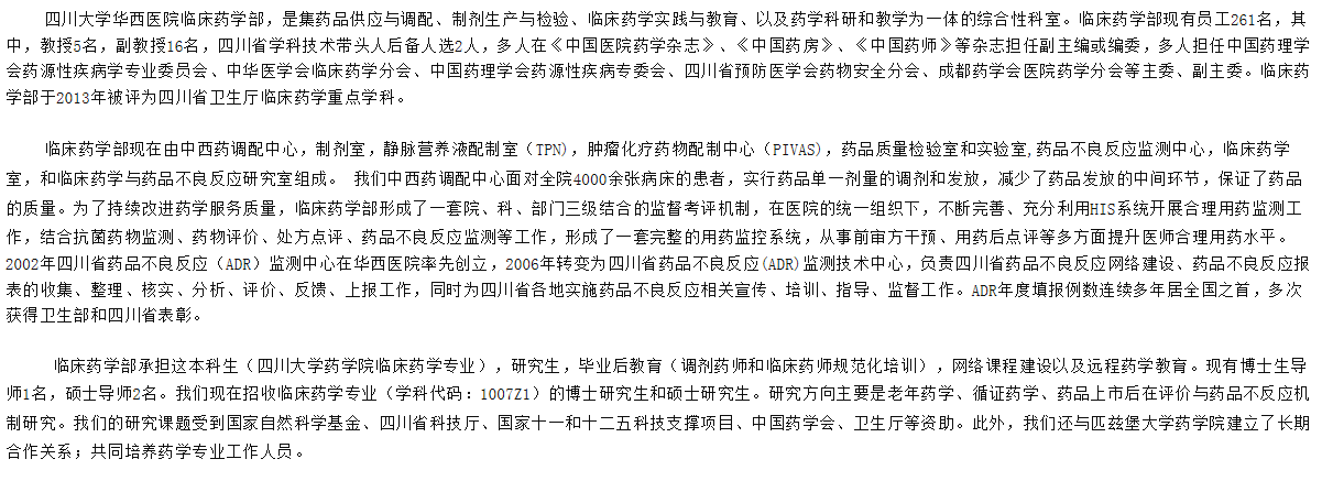 2020年四川大学华西临床医学院临床药学考研学科介绍