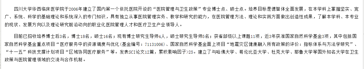 2020年四川大学华西临床医学院医学管理与卫生政策考研学科介绍