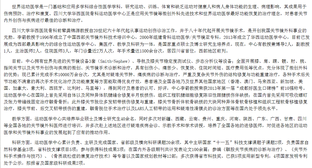 2020年四川大学华西临床医学院运动医学考研学科介绍