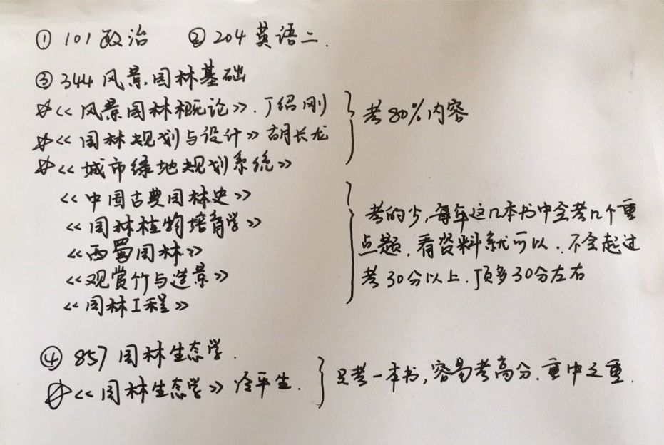 (3)专业课一:344风景园林基础+专业课二:857园林生态学(60%)