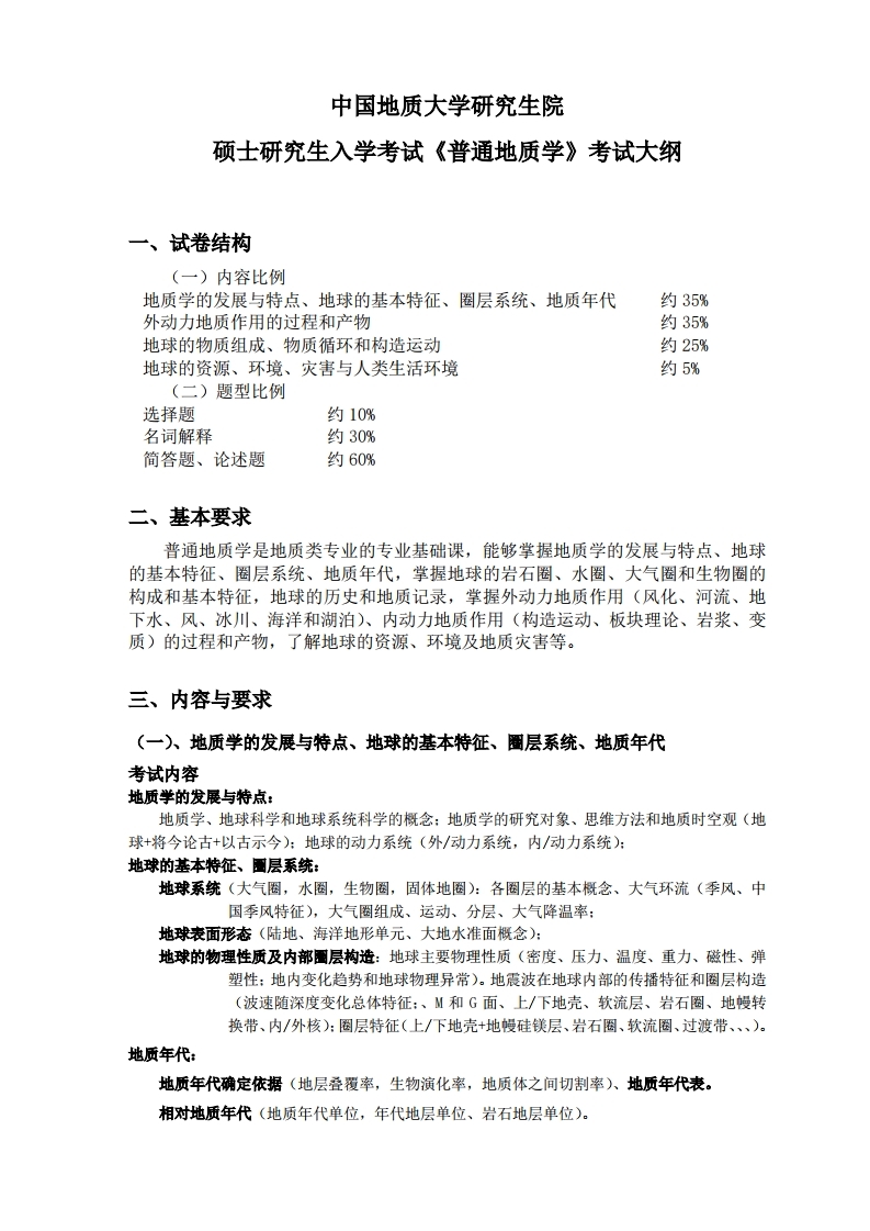 中国地质大学考研辅导班: 中国地质大学(武汉)2020年《普通地质学》考试大纲(适用于地质工程专业硕士生复试)