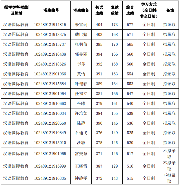 初试科目:①101思想政治理论②201英语一③354汉语基础④445汉语国际教育基础(可跨学科报考)
