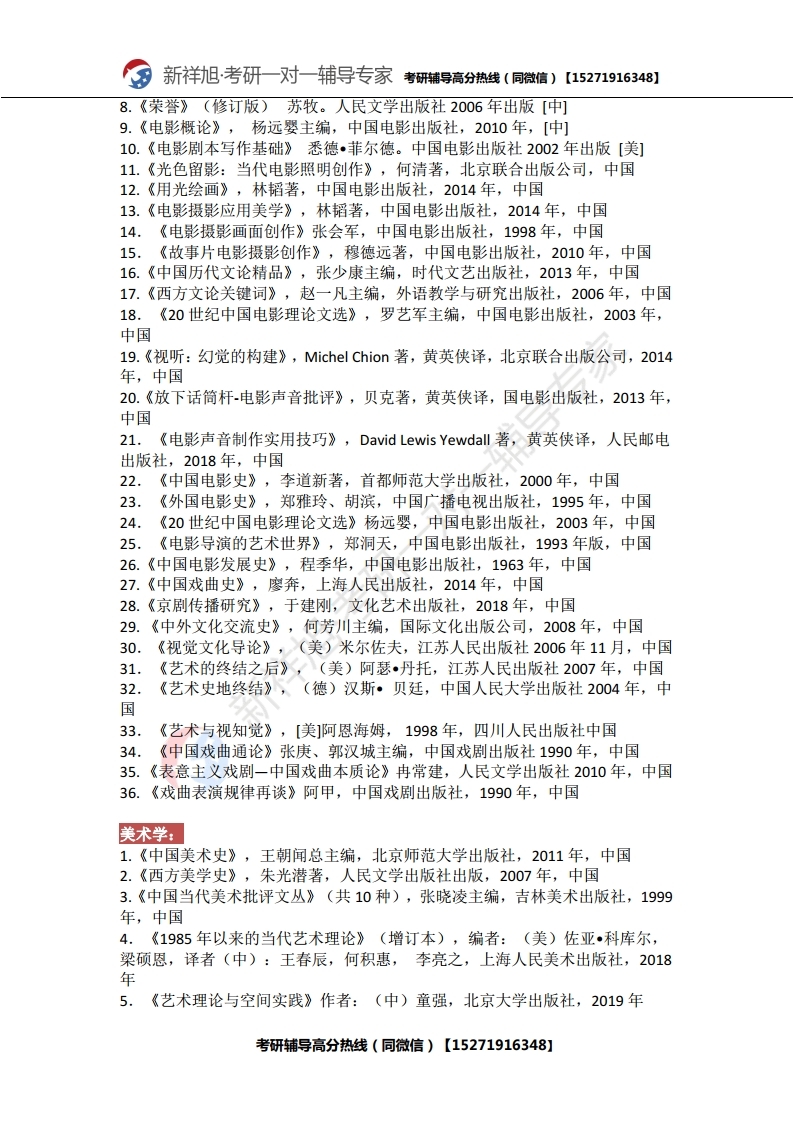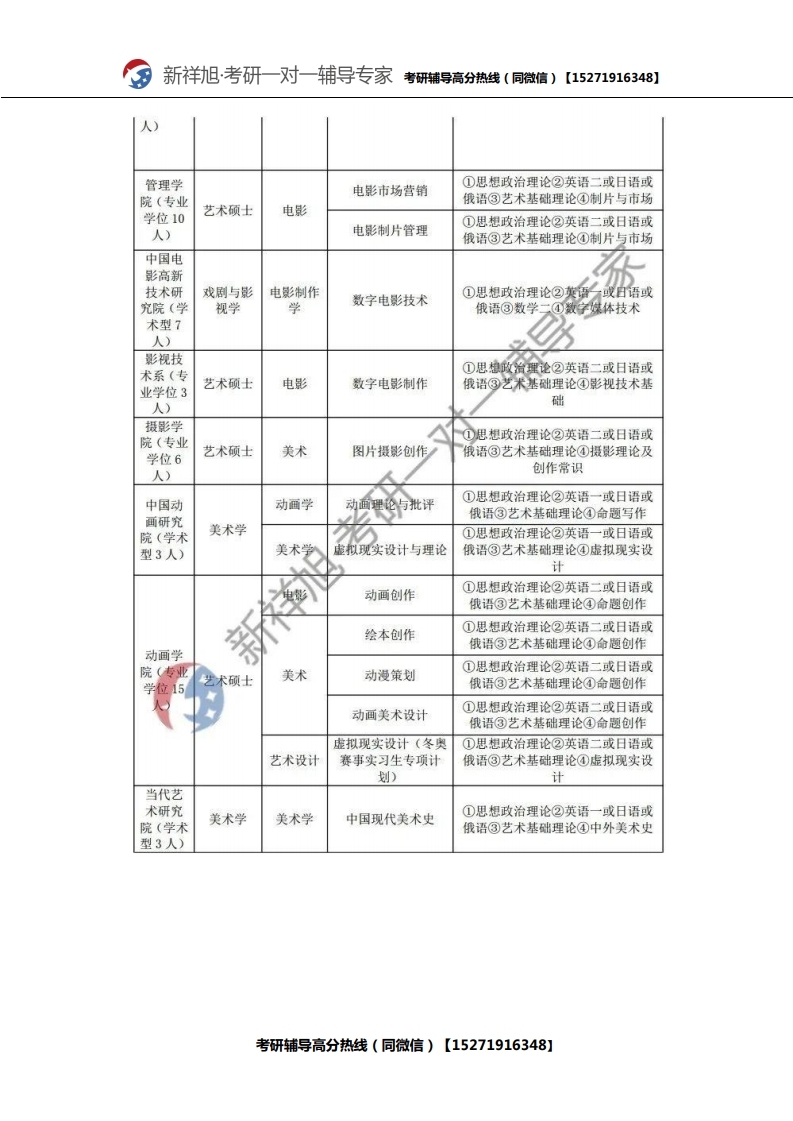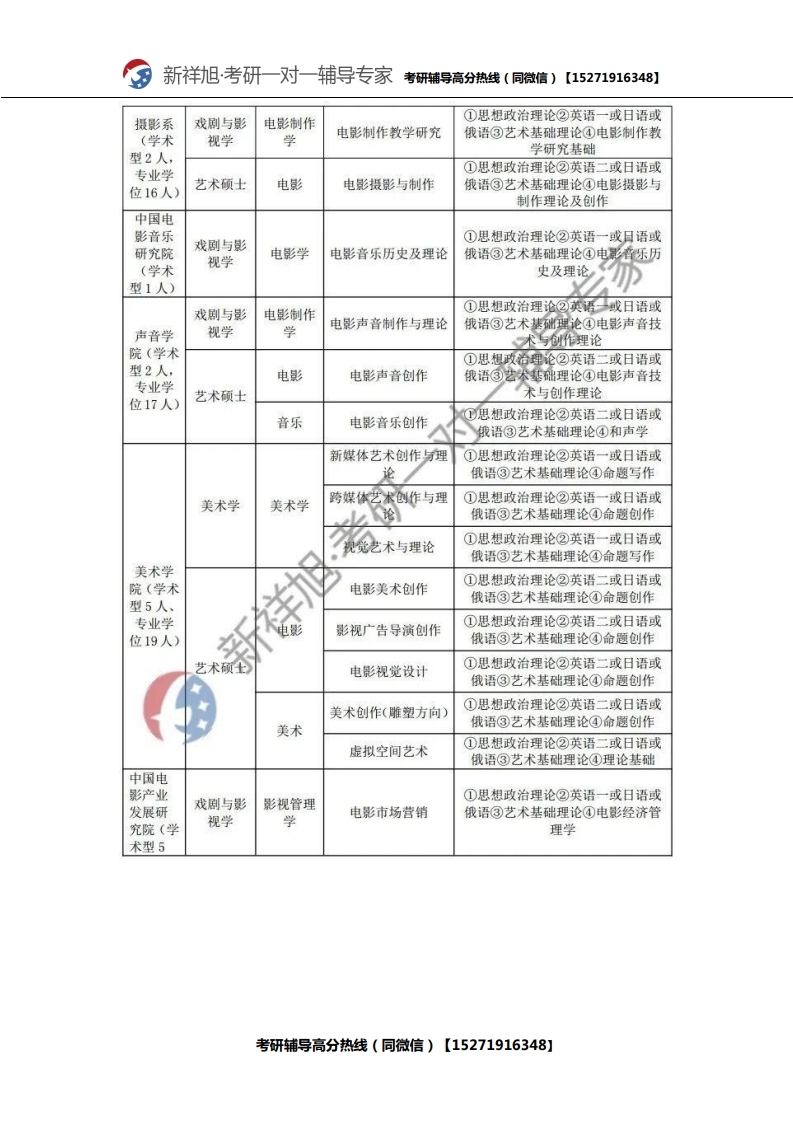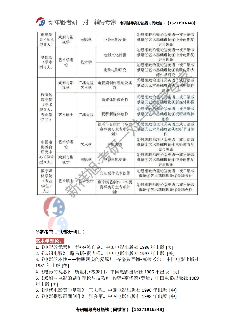 新祥旭考研辅导:2021年北京电影学院研究生考试必看考试科目、参考书目、复试分数