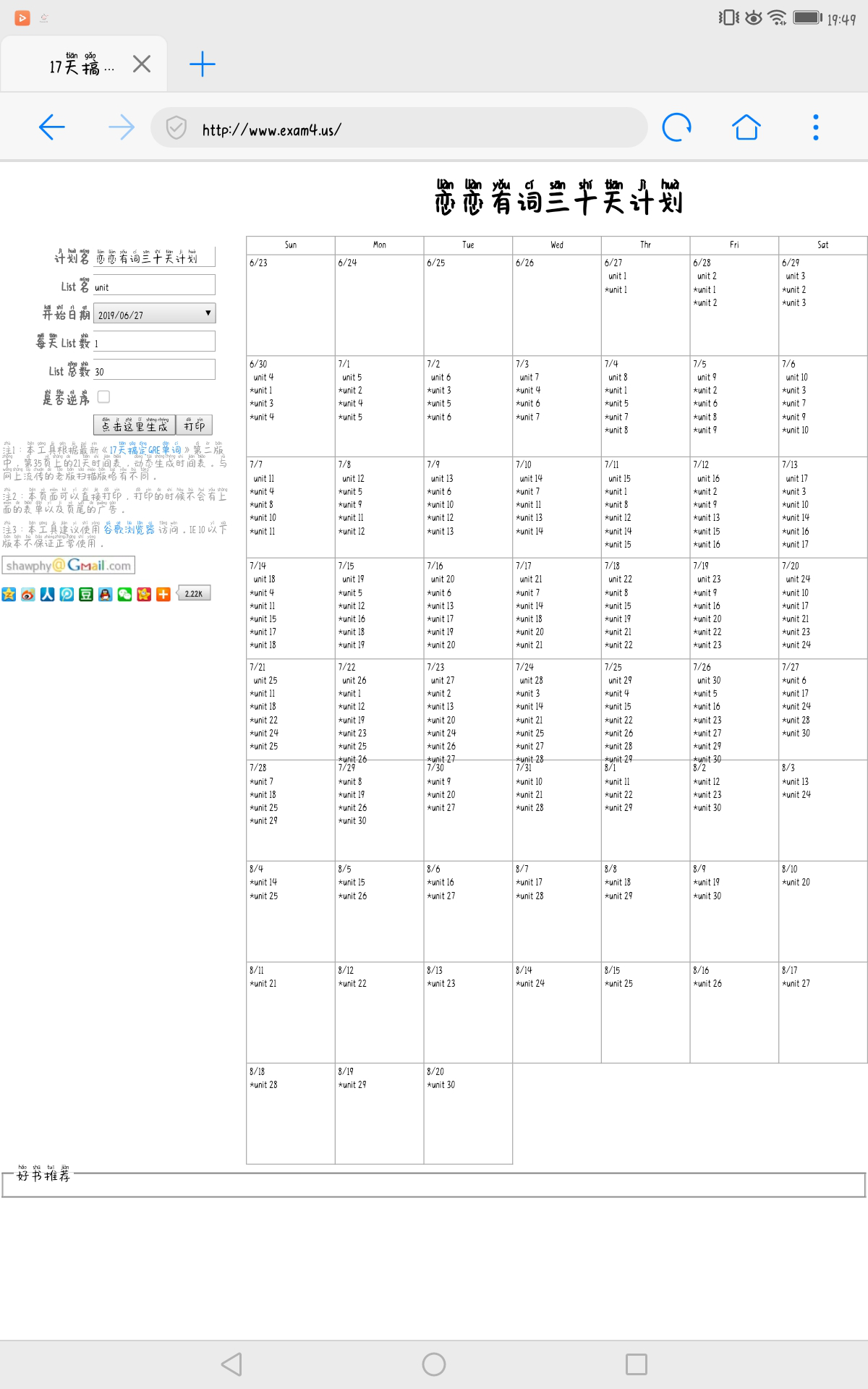 这里分享大家一个我在背单词时候的一个小tips。根据科学家研究,对于每个人的背诵都会存在一个遗忘曲线(打个比方就是你前天背过的单词,可能今天看的时候就已经记忆模糊)。“http://exam4.us/”这个是我一次在刷抖音时候偶然发现的。一个北大学长自己设计的,属于可以帮助你制定计划的。