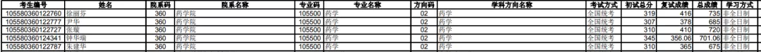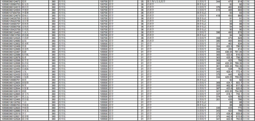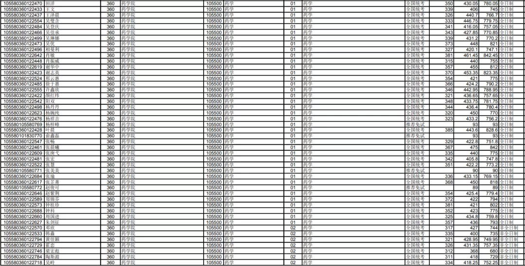 (1) 101 思想政治理论 (2) 201 英语一 (3) 349 药学综合 复试专业课:3605010 药学综合C |