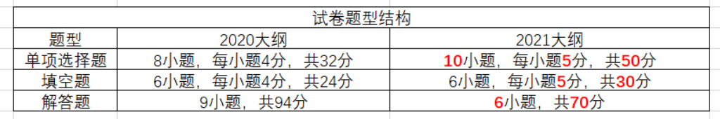 今年的数学无论是“题型结构”还是“知识点新增”,都有很大的变化
