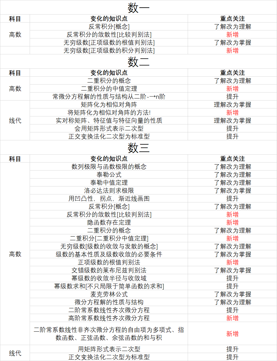 新增的考点是我们接下来复习的重点,被删除的考点我们就可以从自己的复习计划中把它剔除出去了,避免做无用功。