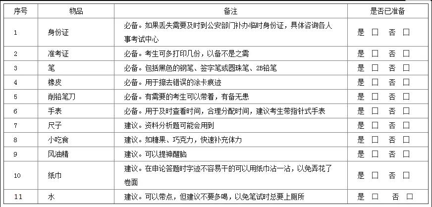 同时,笔试也请大家准备好这些东西,对照以下的表,快清理一下,你还有哪些没准备好的吧。