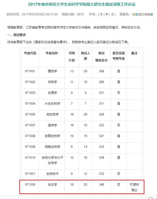 (2)南师大生态学专业基本情况分析及考研难度分析