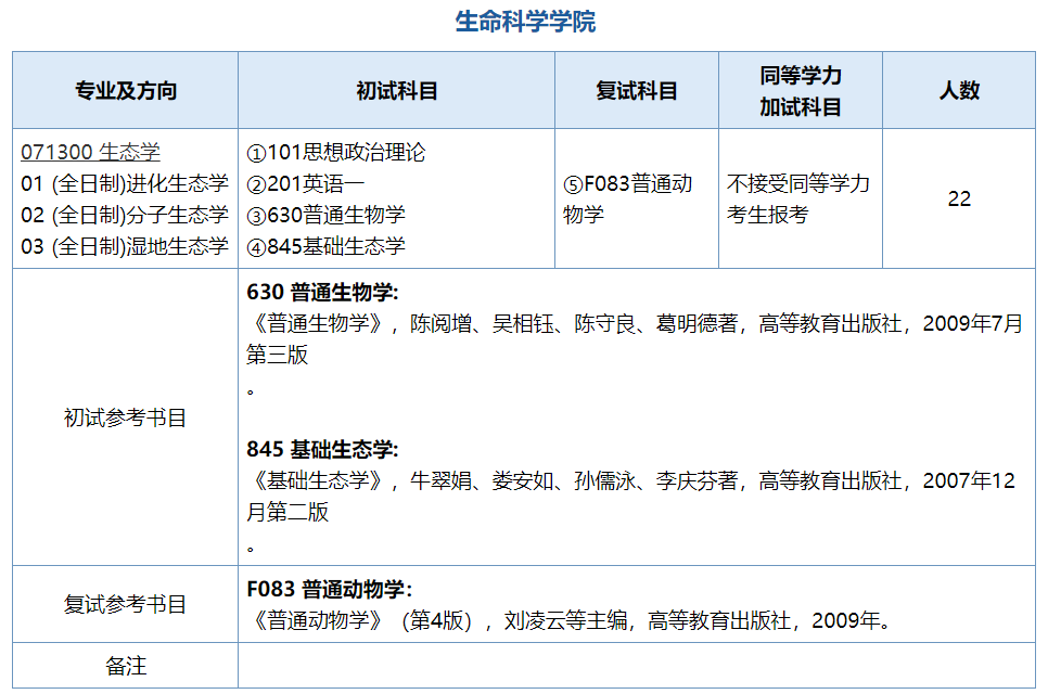 2021年南京师范大学生命科学学院生态学考试科目、参考书、考研经验汇总