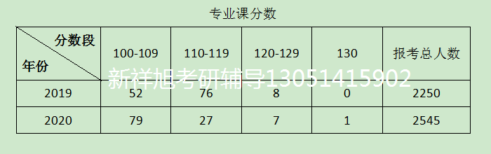 最后,从专业课分数来看,中南财经政法大学金融专硕的分数并不高,不像其它学校一样会出现130、140的高分。2019年专业课在110-119分数段最多,2020年专业课分数在100-109分数段最多。究其原因,可能因为2020年新增了判断题和加大了计算题的难度,备考生准备不充分,使得分数下移。