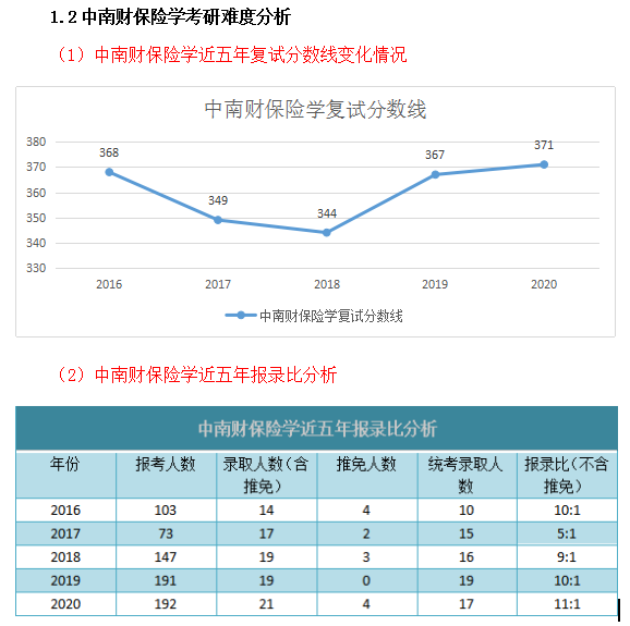 可以看出,近五年来中南财保险学报考人数持续走高,报录比也跟着提高,报考难度越来越大了。