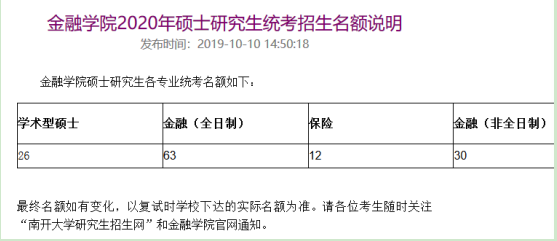2.金融学报录比还是比较低的,不到10%吧,报的人很多,但每年录取人数有限,也就10来个左右。但今年复试过线31个人录取26个人,去年复试刷的人多,但是往年刷的比例很低,也就是初试分数高就很容易被录取,不用担心复试被刷了。如果觉得这个比例低,可以选择金融专硕,专硕名额非常充足。但是在学费(48000)、补助、读博方面有相形见绌。注意专硕是二年、学硕是三年。去年复试线是340分,大概复试刷人比将近1:3,如果依旧根据去年分数线来算的话就是74位同学,其中单科不过线共10位同学(专业课和数学按90分算、英语按照55分算、政治按照60分算)或者14位同学(英语按照60分划线)。如果按照复试刷人比1:1.2进行计算就是33位同学(按照370分划线)上述两种情况均是按照历史数据计算所得,仅供参考,不排除会有其它情况出现。