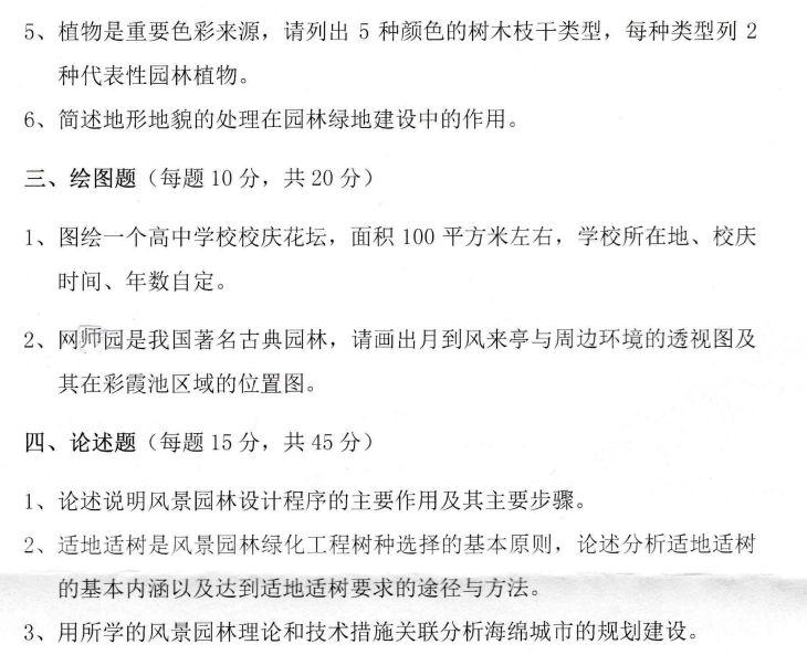 理论山建的专业课专硕考7、8本书,考的比较多但是比较浅。有精力的可以先看一遍书再看资料,我是直接结合资料看的书。结合山建历年的真题来看,山建本校老师出的书考的内容比较多,中国古典园林史和风景园林工程多出绘图题和简答,但是今年这两科出的都是填空,所以复试尽量还是要全面广泛,不要过分看重某一本书或不看重某一本书。