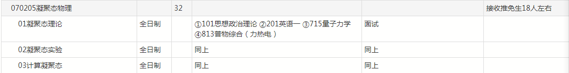 凝聚态物理专业研究生主干课程:高等量子力学、固体理论、固体物理II、现代物理实验方法、离子注入原理、固体中原子碰撞物理学、量子统计格林函数理论、多体理论及其在固体物理中的应用、群论及其在固体中的应用、X射线衍射学、固体点缺陷、半导体材料与器件、半导体表征技术、离子注入冶金学、表面分析与电子能谱、固体物理专题、穆斯堡尔谱分析、相变临界现象重整化群、计算物理和方法、薄膜物理与工艺、纳米材料与技术等。
