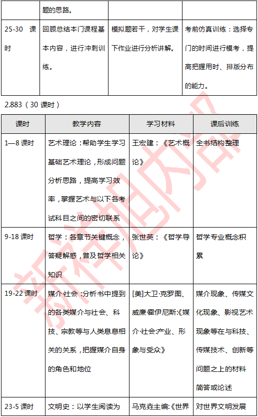 其次,883《人文社科基础》从文史哲传四个方面入手,虽然在一定程度上考察学生的基础知识积累,但通过分值分布可以发现,考试不仅在于考察关键知识点的记忆,而且注重学生对理论的活学活用、举一反三。四本厚重的参考书对很多考生来说像是一座大山,如何全面阅读、理解、记忆是一个首要问题。对于这一困境,我认为教学不仅在于帮助学生理解相关知识,而且要善于总结提炼,要关注全书逻辑和文本分析的基本模式,这对于简答和论述的答题具有高效作用。在这一部分,我提倡以学生阅读为基础,老师引领为手段,符合答题需求为目标。在日常教学规划中,将避免老师带领学生每章每节仔细解读,因为这将非常耗时且成效不明显。教学将采用问—读—讲的模式,上课期间由老师规定阅读篇目,提出带有思路引导的问题,学生通过课前阅读进行思考,并在下一节课对相关问题进行解读,并对相关重点理论知识点进行讲解。在把握基本内容后,可根据每本书具体情况,选取重点进行模考。最终使考试能够较为从容地应对现场考试。