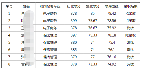 电子商务专业录取了一个人,考研初试分数395(另外有两个调剂录取的考生,情况在文末)