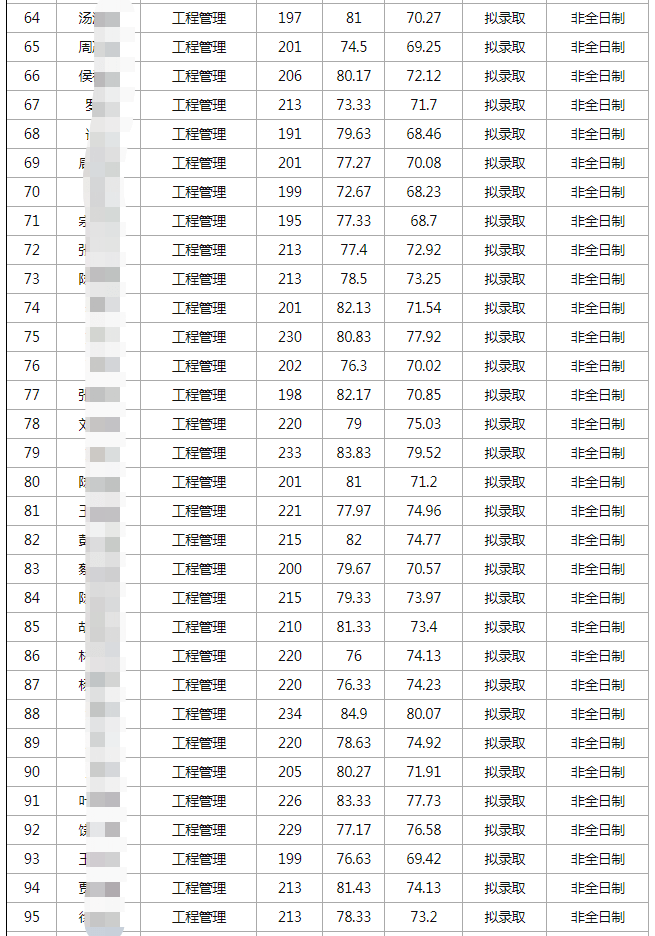 工程管理非全日制200分上下,能拿到210分及以上会比较稳