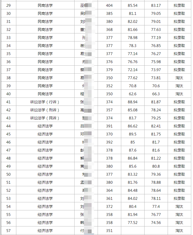 武大法学院各个专业招生人数
