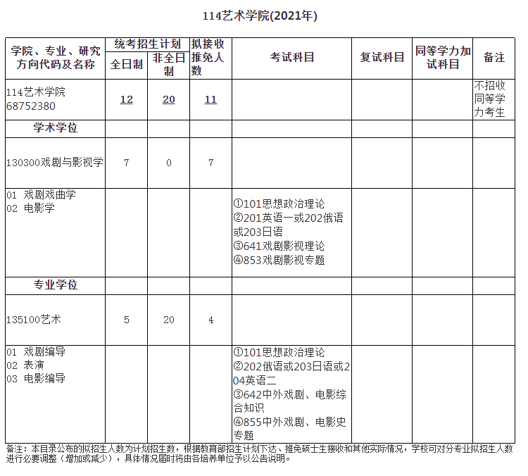 一、武汉大学艺术学院21年的考研招生情况如下: