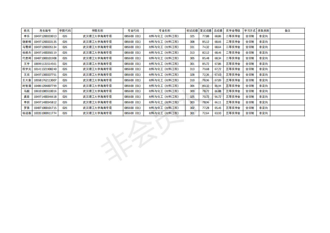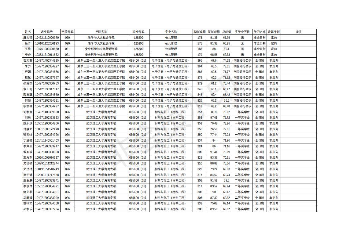 根据《武汉理工大学 2021 年硕士研究生复试录取工作方案》和学院招生复试录取工作实施细则相关规定,学院组织 2021 年硕士研究生招生复试并确定了拟录取结果。现将第四批拟录取结果予以公示(详见附件)。公示期自 2021 年 4 月 30 日至 2021 年 5 月 17 日。公示期间,如有异议,请实名以书面形式向武汉理工大学研究生院招生办公室反映。