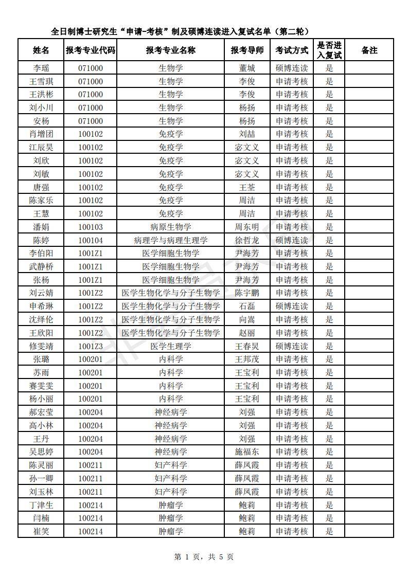 全日制博士研究生“申请-考核”制及硕博连读进入复试名单(第二轮)