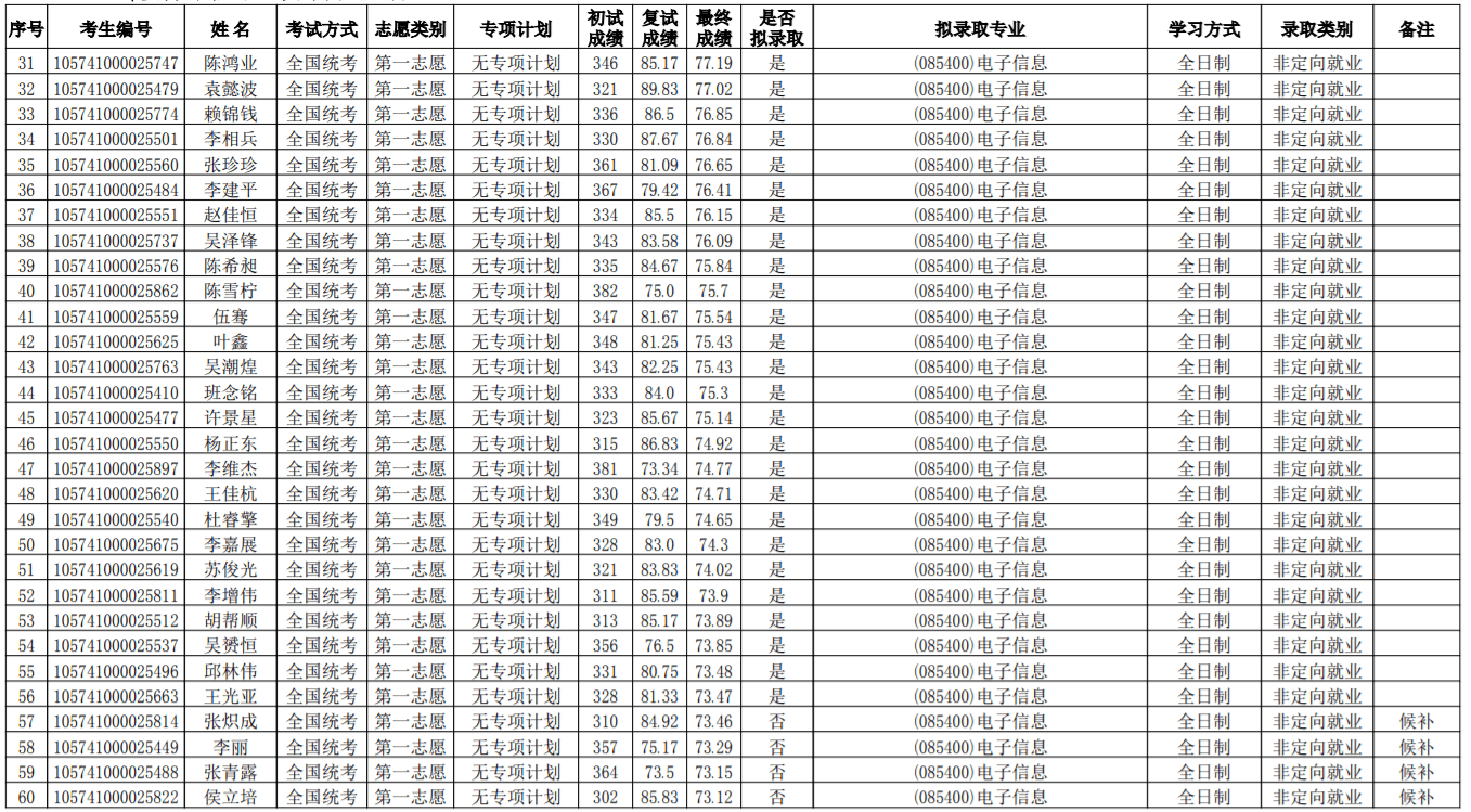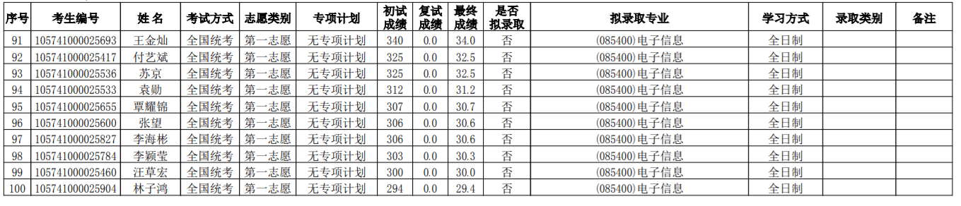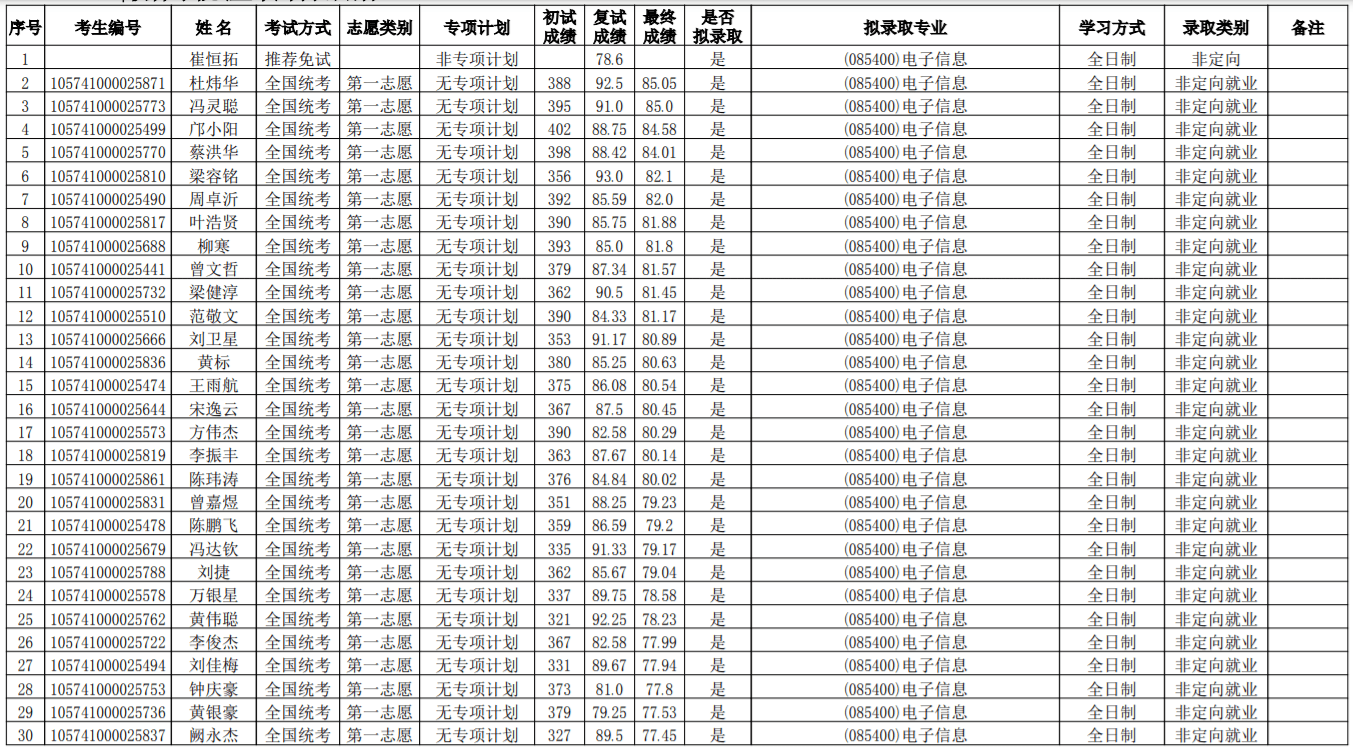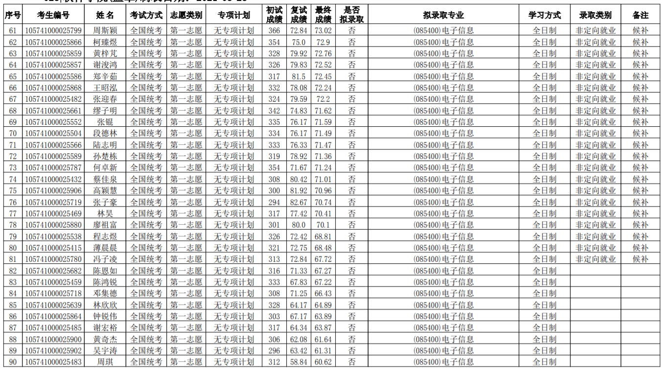 华南师范大学软件学院21年硕士研究生复试及拟录取情况汇总表
