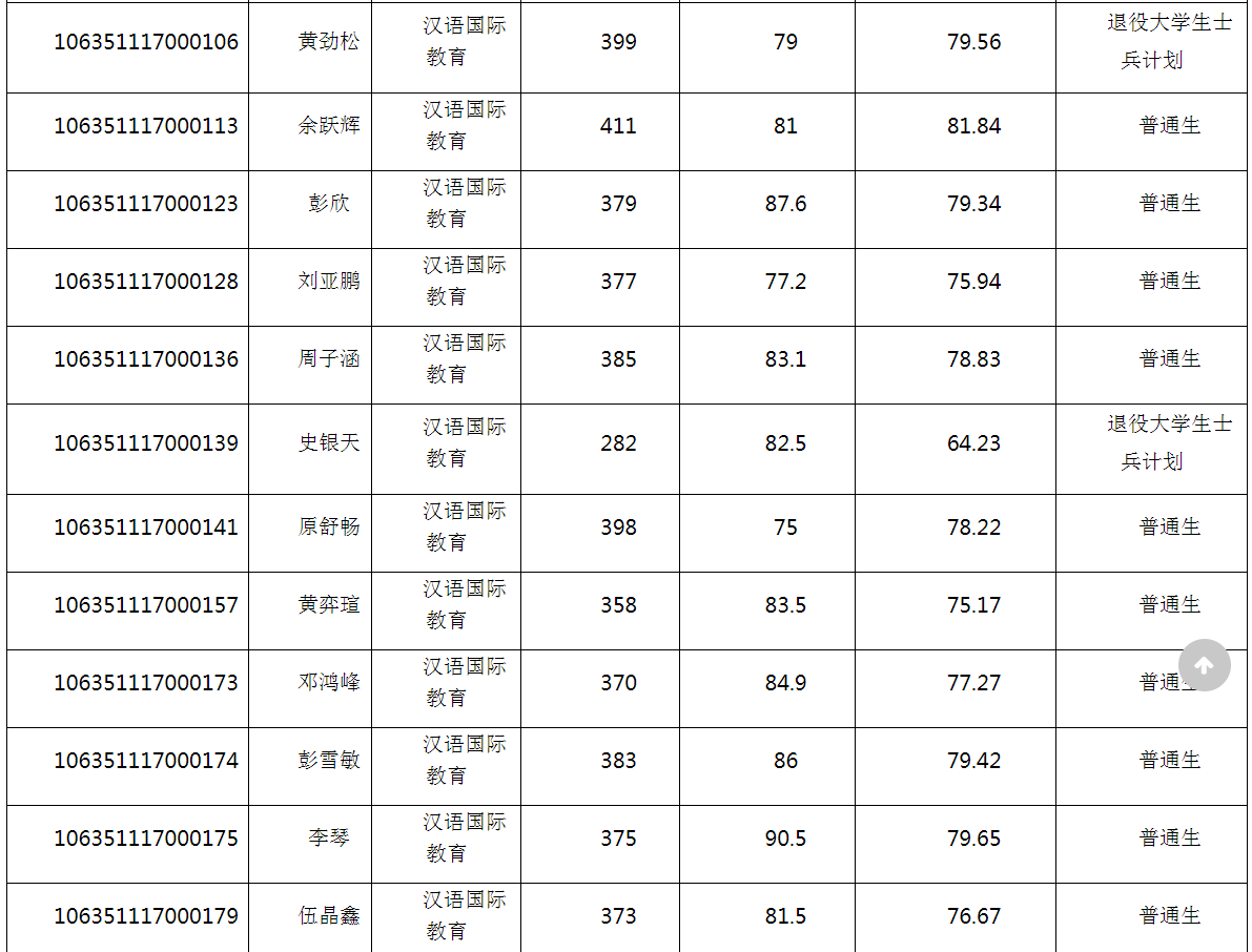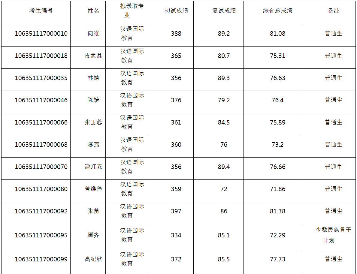 0453 汉语国际教育 34 1 ≥50 ≥90 351 不接收调剂