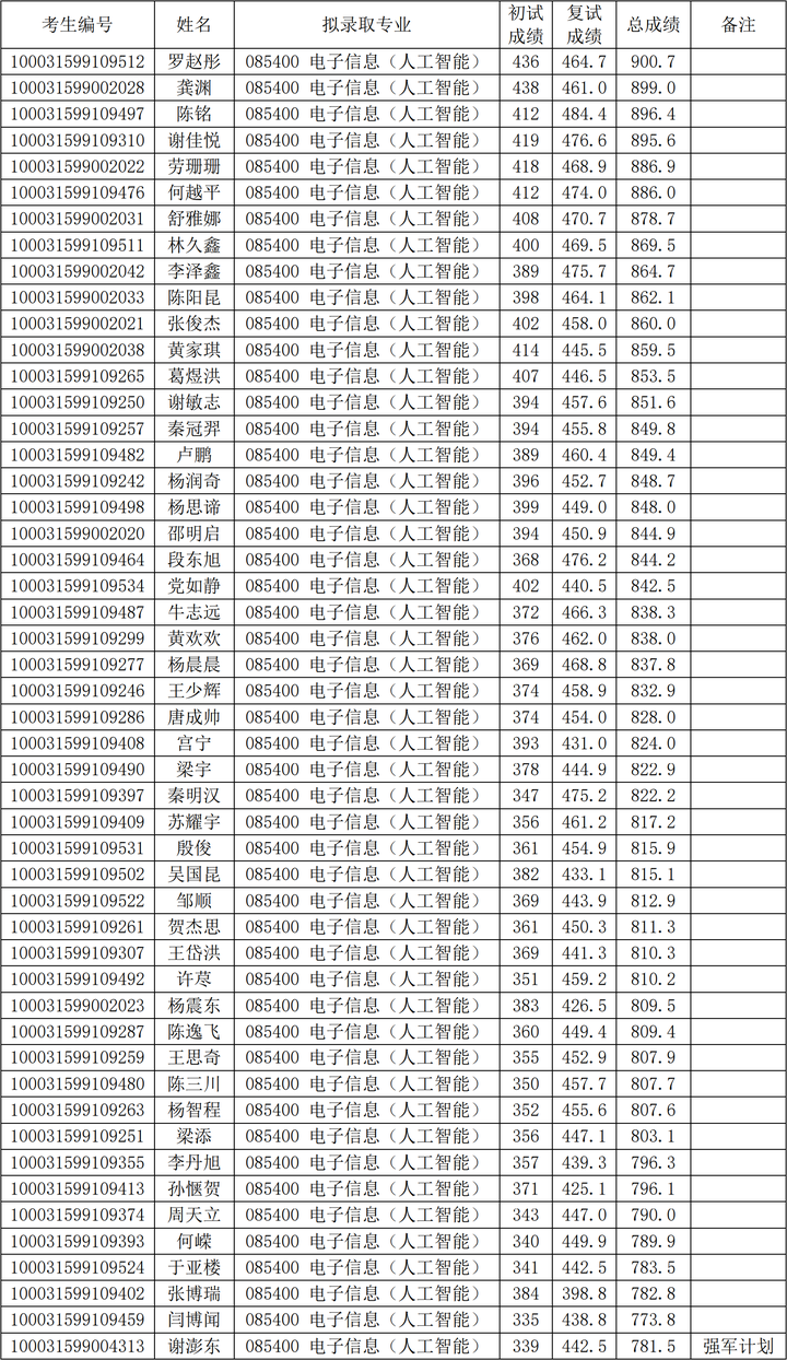 2021年清华大学深研院电子信息(人工智能)硕士研究生考研复试情况及拟录取名单