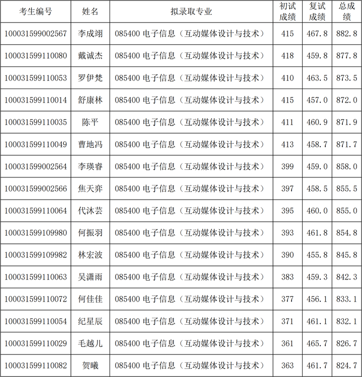 2021年清华大学深研院电子信息(互动媒体设计与技术)硕士研究生考研复试情况及拟录取名单