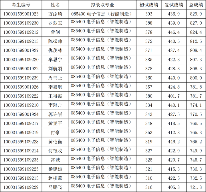 2021年清华大学深研院电子信息(智能制造)硕士研究生考研复试情况及拟录取名单