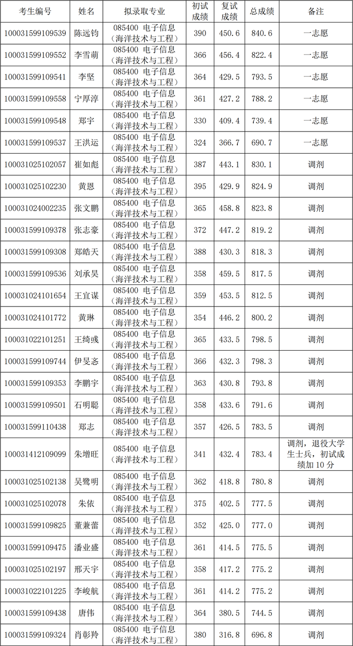 2021年清华大学深研院电子信息(海洋技术与工程)硕士研究生考研复试情况及拟录取名单