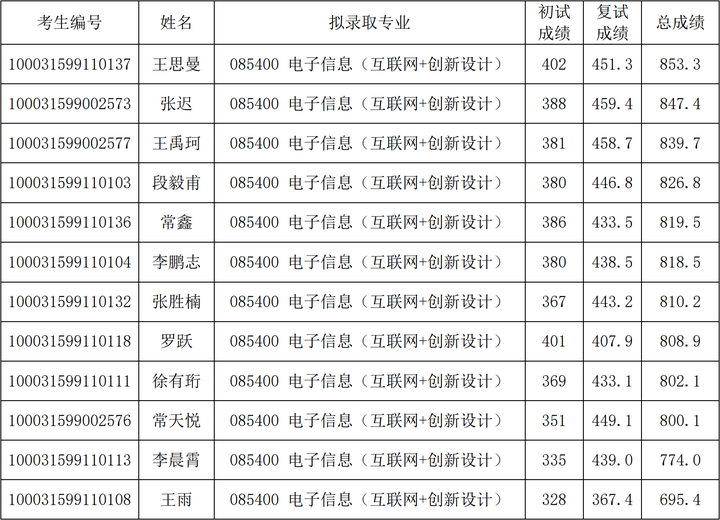 2021年清华大学深研院电子信息(互联网+创新设计)硕士研究生考研复试情况及拟录取名单