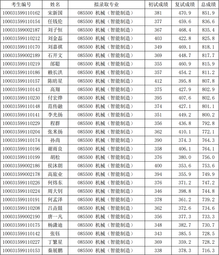 2021年清华大学深研院机械(智能制造)硕士研究生考研复试情况及拟录取名单