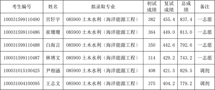 2021年清华大学深研院土木水利(海洋能源工程)硕士研究生考研复试情况及拟录取名单