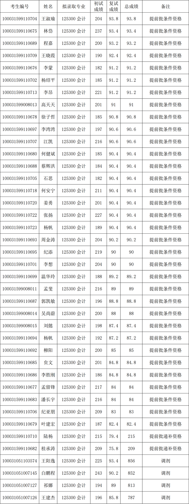2021年清华大学深研院会计硕士硕士研究生考研复试情况及拟录取名单