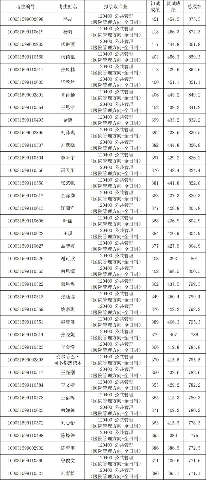 2021年清华大学深研院公共管理(医院管理)硕士研究生考研复试情况及拟录取名单