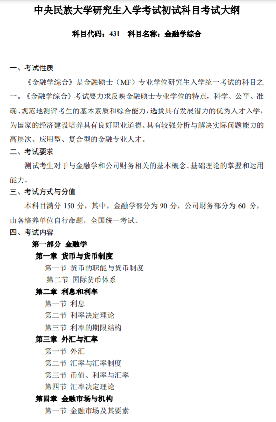 431金融学综合