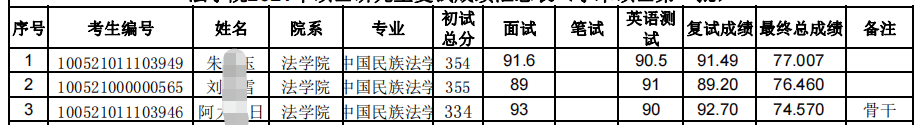 三、21年考研拟录取名单(考研录取结果)