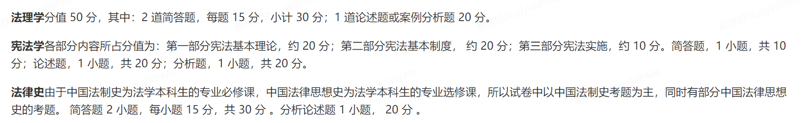 初试科目:①101思想政治理论②201英语一或203日语③613法律史,宪法学,法理学④813法学专业综合(按专业选做)