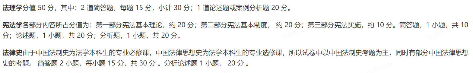 初试科目:①101思想政治理论②201英语一或203日语③613法律史,宪法学,法理学④813法学专业综合(按专业选做)