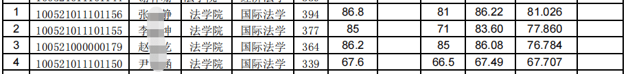 19年 国际法学 4人 321分 1:1.3