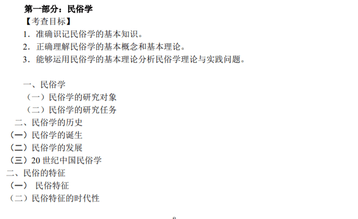 民俗学(含民间文艺学)专业基础考试涵盖民俗学(含民间文艺学)原理、民俗学(含 民间文艺学)不同文类特点、民俗学(含民间文艺学)史、民俗学(含民间文艺学)研究方 法等内容。要求考生系统掌握民俗学(含民间文艺学)基本理论、基本知识和基本方法,能 够运用所学的基本理论、基本知识和基本方法分析、判断和解决与民俗学(含民间文艺学) 有关的理论问题和社会问题。