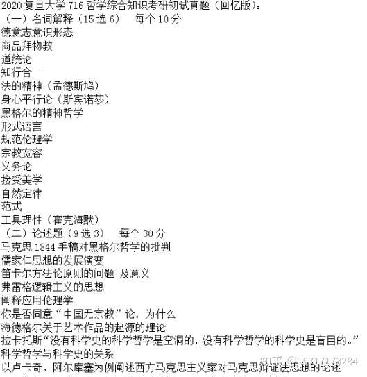 2020复旦大学825中国哲学史考研初试真题(回忆版)