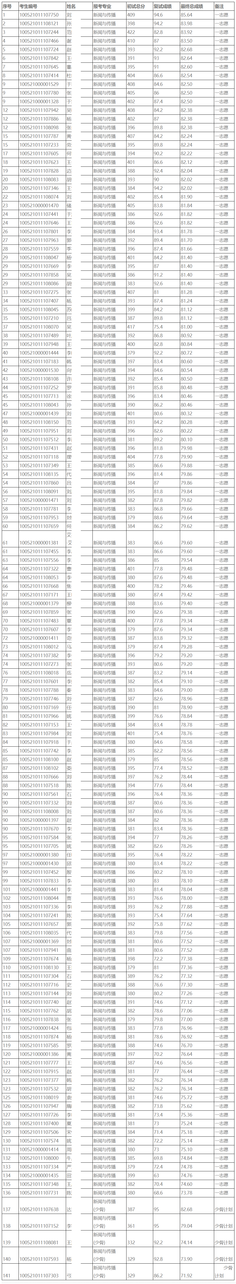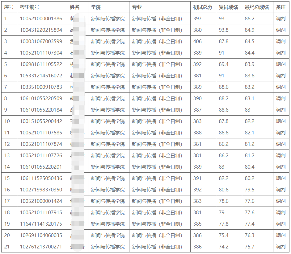 三、21年考研拟录取名单(考研录取结果)