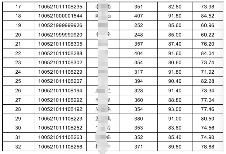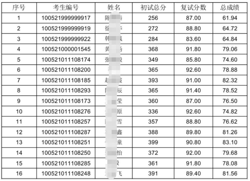 备注:为保护各位考生的个人隐私,这里只列出考生的编号、录取专业、各项成绩,隐去了姓名。大家可以比对最终的考研录取分数,给自己定下合理的考研目标。一般实际的录取分数,还是会高于复试分数线的。