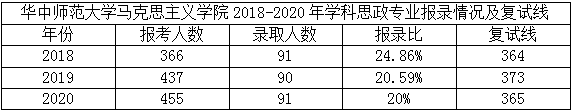 另外,华师马院学科思政专业近几年的报录比为20%左右,录取人数大概为90人左右,虽然该专业录取人数较多,但是其报考人数在逐年增加,近几年的复试线也稳中有升,稳定在370分左右,总体来说该专业的考研竞争力在逐年增强,考研难度有所增加,在此提醒各位学弟学妹千万不能掉以轻心,需要认真备考。